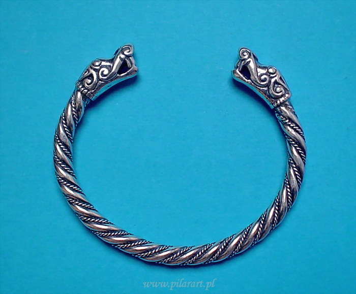 Polecamy Nowość Bransoleta z głowami wilków Bransoleta skręcana z głowiami wilków, Skandynawia IX-Xw. Cena może ulec zmianie w zależności od rozmiaru. Jest zależna od wagi srebra. W takim przypadku informujemy mailowo przed wysyłką. SYMBOL: WC 533 WAGA: 45,00 gram SREBRO: 925 WYMIARY: 7,5 x 6,3 cm Cena brutto: 809.99 zł