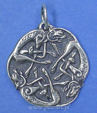 Zawieszka celtycka przedstawiająca trzy wilki.